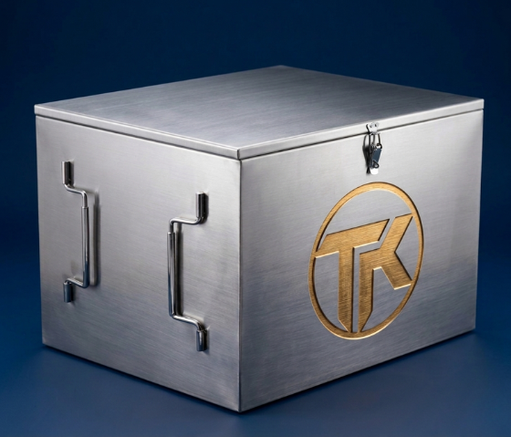Sản phẩm được gia công từ kim loại chất lượng cao, bề mặt hoàn thiện sang trọng, chống trầy xước và chịu lực tốt. Các chi tiết như khóa kim loại và tay quay được chế tạo tỉ mỉ, tạo nên tổng thể vừa cứng cáp vừa độc đáo.